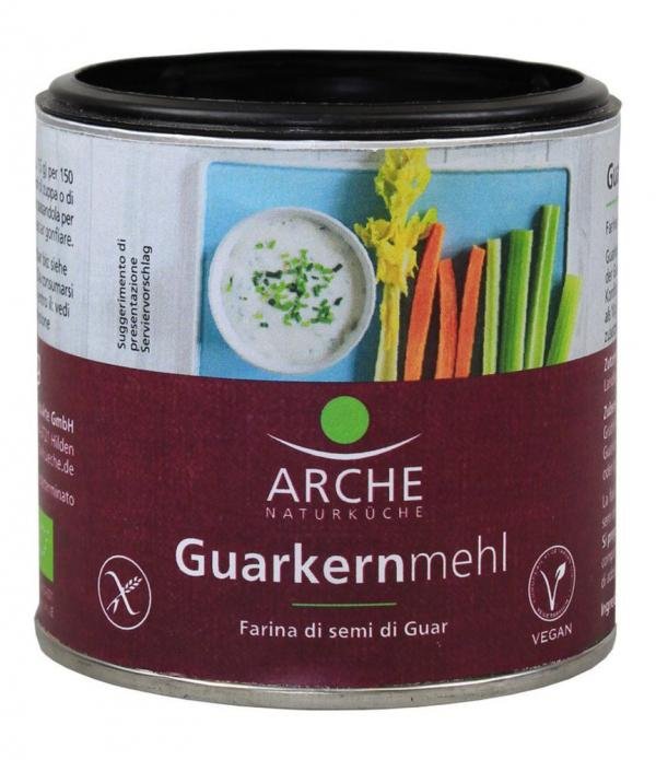 Guarkernmehl ist ein pflanzliches Verdickungsmittel aus den Samen der Guarpflanze. Es bindet auch ohne Kochen. Ideal für kalte Desserts, Kaltschalen, Dips, und warme Gerichte wie Suppen, eifreie Aufläufe und Gemüsegerichte.