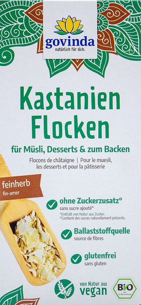 Genießen Sie diese feinen Kastanienflocken zum Müsli, mit Obstsalat oder einfach pur.